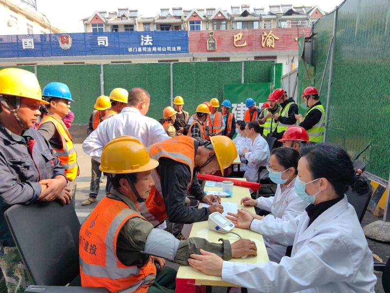 春忙季也是多种病原体活跃的季节。近日,祁门县祁山镇卫生院党支部组织“党旗飘扬 健康护航”进工地送健康医护专家团队8人,为梅城大厦项目工地的工人们带去了优质便捷的健康服务。