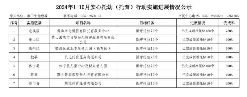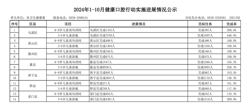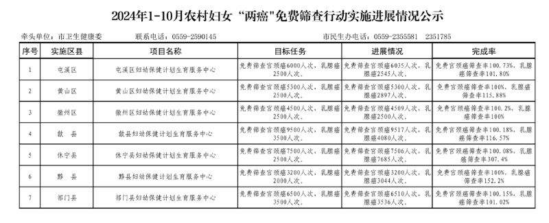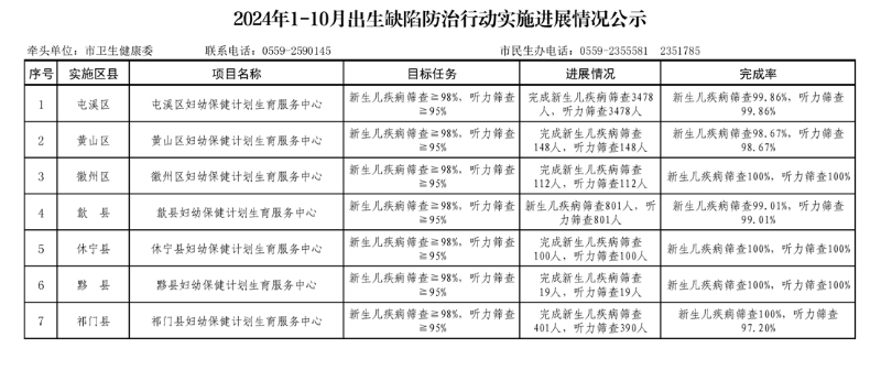 黄山市2024年1-10月卫生健康民生实事项目实施进展情况公示