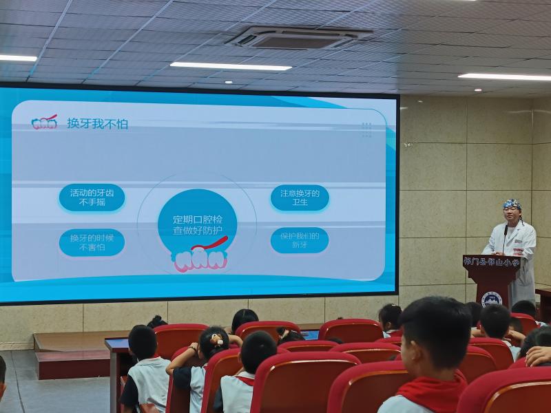 “2025年9月20日,我们将迎来第37个‘全国爱牙日’,今年的宣传主题是‘口腔健康 全身健康’。”活动现场,黄山口腔祁门门诊部医生站上讲台,先是向学生们清晰介绍了本次活动的背景与意义,随后借助生动的幻灯片,用图文并茂的形式讲解口腔保健知识,从牙齿的构成到牙齿的用处,从牙齿保护方法到换牙注意事项,将专业知识转化为孩子们易懂的语言,让护牙理念深入人心。