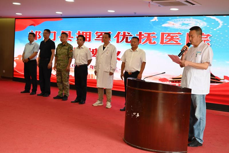 祁门县人民医院院长叶学勇在致辞中说,拥军优属既是时代使命,更是政治责任。近年来,祁门县人民医院积极响应号召,承担社会责任,坚持把拥军优抚作为工作重点,主动承担拥军优抚主体责任,积极开展形式多样的拥军活动。他代表祁门县人民医院郑重承诺,一定会把对退役军人的各项优惠措施兑现好,让尊崇与优待落到实处。接下来医院将进一步发扬拥军优属双拥优良传统,推动双拥工作再上新台阶。