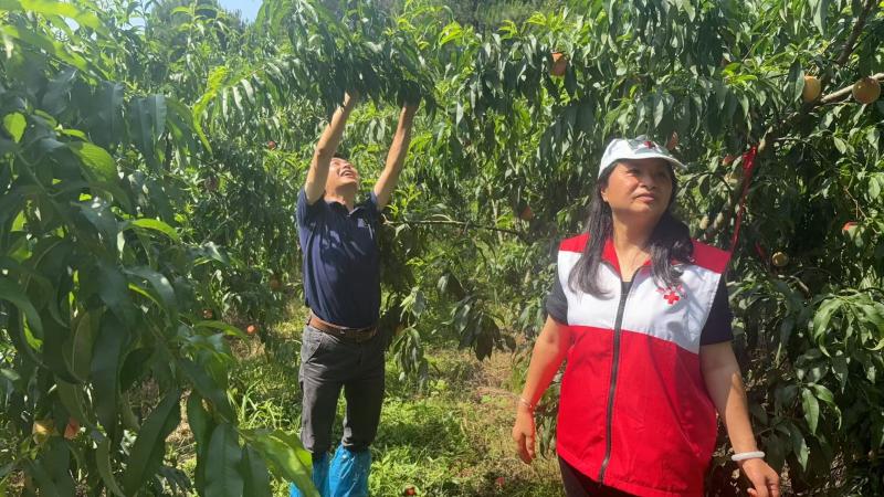 休宁县卫健委及时与吴积富联系,了解今年桃子行情,并紧急安排人员帮忙采摘。6月17日,趁着天气晴好,县卫生健康委牵头,带领县红十字会、县计生协、县妇幼计中心等部门同志,连同“博爱休宁”志愿服务组织一起来到吴积富的桃园,大家同心协力帮忙采摘桃子。桃子很红,很香,大家一个个拎着小桶,穿梭在桃林之间,探探这个,摸摸那个,轻轻一摘,放到桶里。碰到熟透的,摘一个亲口品尝一下,香甜多汁。一个上午时间,大家就采摘了近1100斤,加上6月16日疾控中心同志的帮忙,一共采摘了超过1600斤,收入超过1万元。