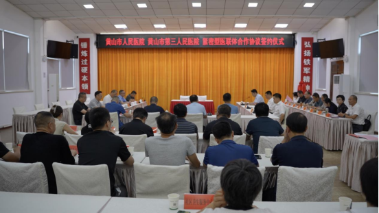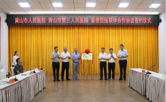 8月1日上午,黄山市人民医院与黄山市第三人民医院紧密型医联体合作协议签约暨揭牌仪式在徽州区隆重举行。此次合作是落实健康中国战略、深化医药卫生体制改革的重要实践,标志着我市优质医疗资源扩容下沉和区域均衡布局迈出关键一步,将有效提升徽州区医疗服务能力,让群众在家门口享受三甲医院优质服务。