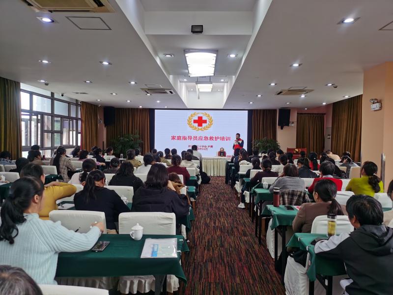 县红十字会负责同志边讲解边演示,系统讲授了血液生理知识、心肺复苏急救、自动体外除颤器(AED)使用、外伤处置等应急救护知识,着力提升家庭健康指导员应对突发事件处置能力。