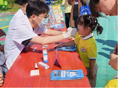 多名儿童积极参与现场体验,在专业医生的指导下体验涂氟,学习正确的刷牙方式方法。
