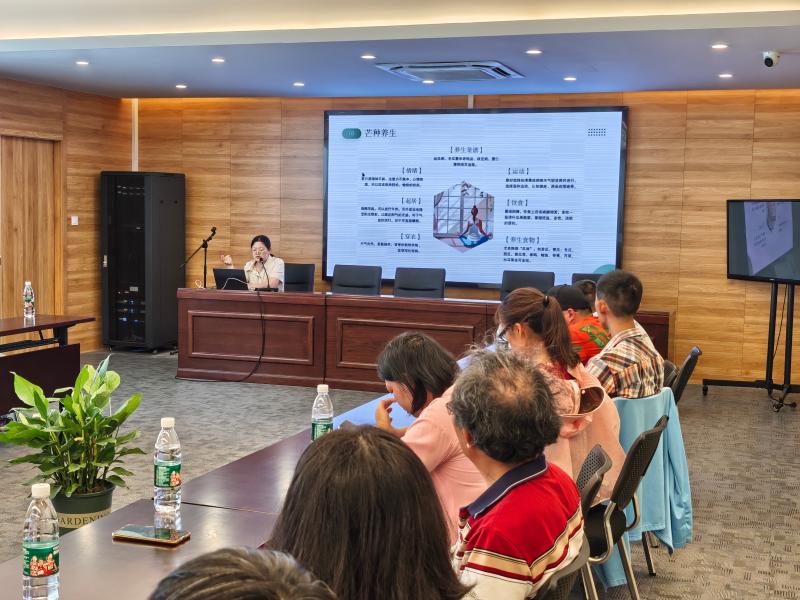 中心医务人员围绕中医养生的基础理论、季节性养生要点、饮食调养、日常起居习惯等方面进行深入浅出的讲解。参与者们听得津津有味,不少人在讲座间隙提问,积极互动,现场气氛活跃。通过夏季养生讲座,大家纷纷表示受益匪浅,不仅对中医养生有了更全面的认识,还掌握了不少可以立即应用于日常生活中的养生小技巧。