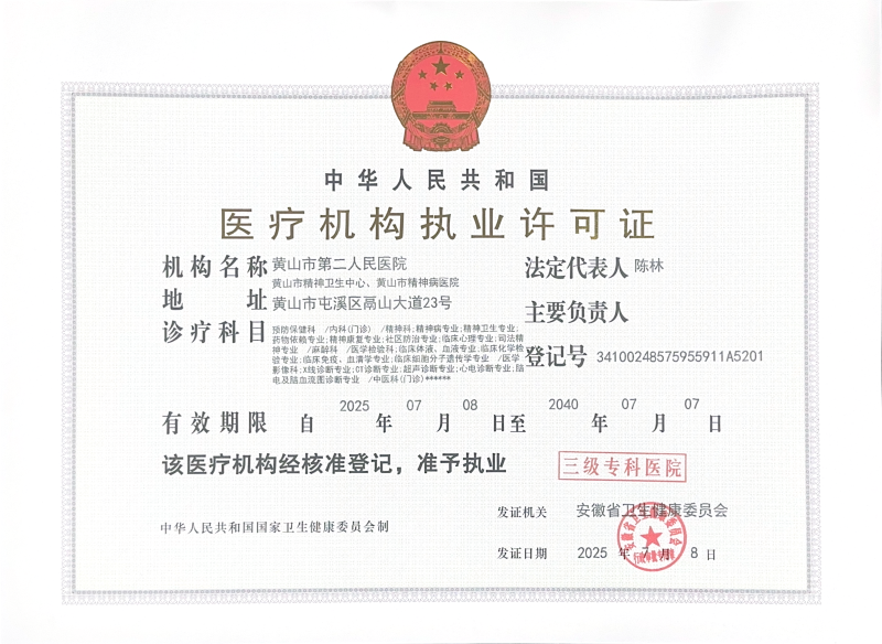 > 黄山市第二人民医院(黄山市精神卫生中心)