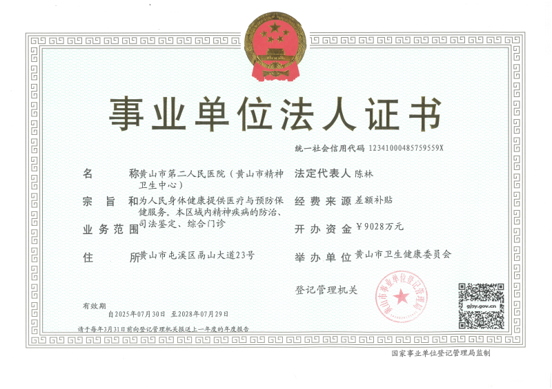 > 黄山市第二人民医院(黄山市精神卫生中心)