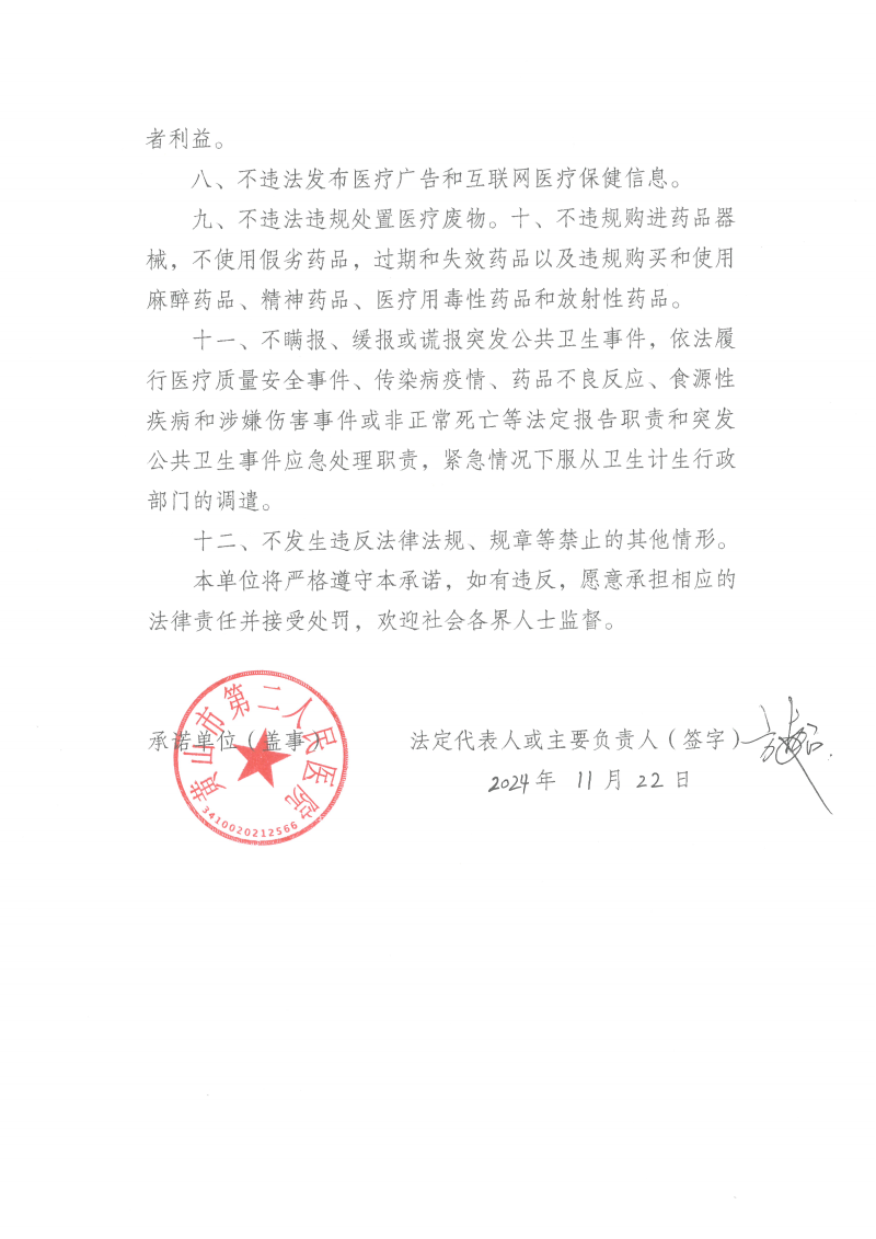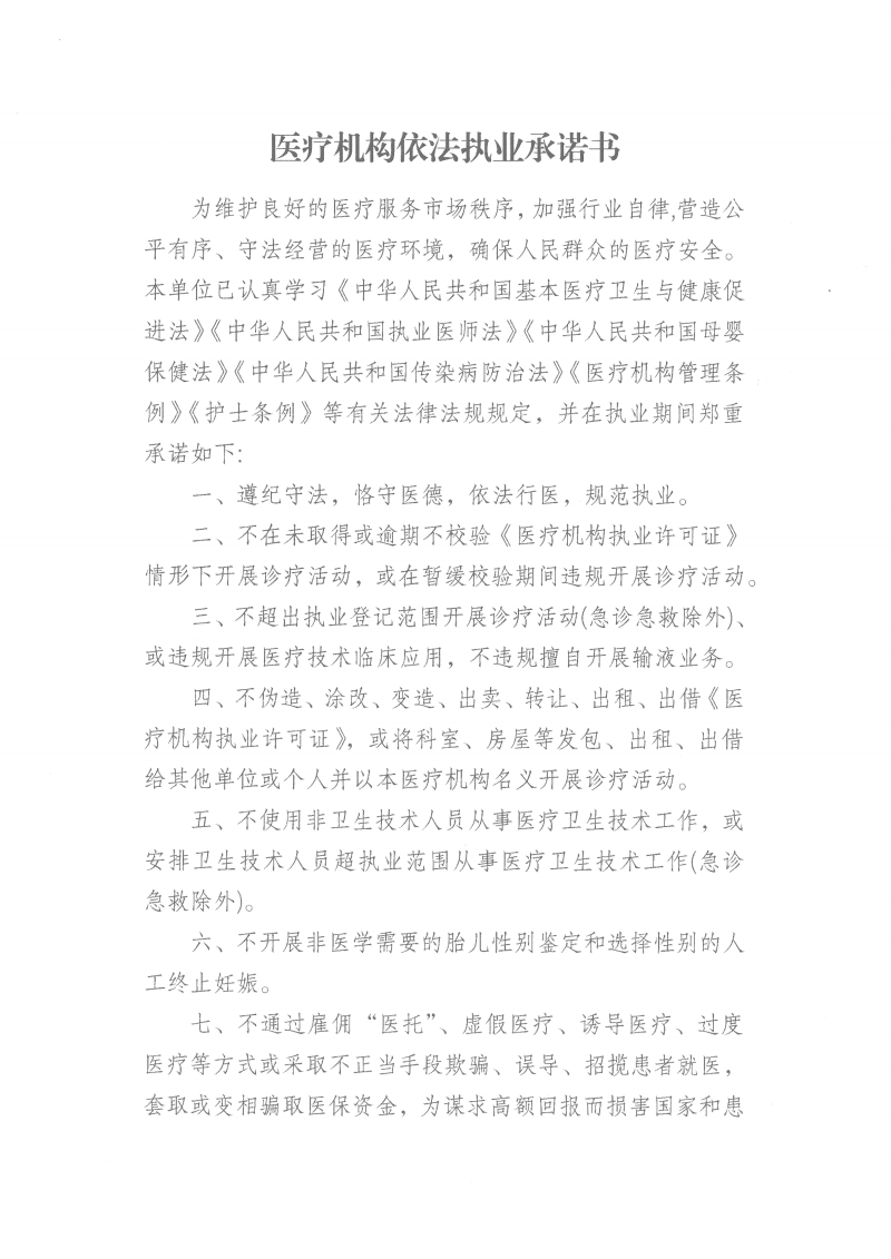 医疗机构依法执业承诺书